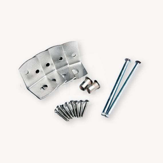 Om tuinschermen op een stevige manier vast te maken is deze bevestigingsset beschikbaar. De steunen worden geleverd per set van vier stuks. Om een tuinscherm stevig aan betonpalen te bevestigen zijn vier steunen nodig: twee aan de boven- en twee aan de onderzijde aan zowel de linker- als rechterkant van het scherm.