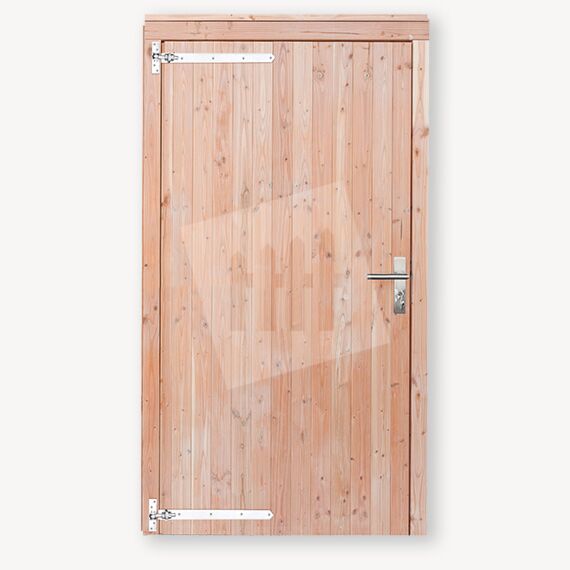 Heeft u een schuurtje dat u graag op een mooie en goede manier af wilt sluiten? Dan is deze enkele douglashouten deur een goede optie. De deur is volledig dicht en wordt geleverd inclusief tochtstrips, verzinkte verstelbare hengen, een deurkozijn en inbouw cilinderslot. Deuren die geleverd worden met cilinderslot zijn links- of rechtsdraaiend. De afbeeldingen hierboven laten zien wat het verschil is.