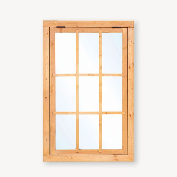 Zorg voor een natuurlijke lichtinval in een schuurtje, blokhut, veranda of overkapping met dit mooie douglas uitzetraam! Het raam wordt geleverd met roedes die door middel van een 9-vlaksverdeling gemonteerd kunnen worden.