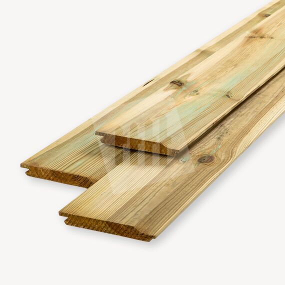 Het geschaafd rabat is gemaakt van groen geïmpregneerd vurenhout.