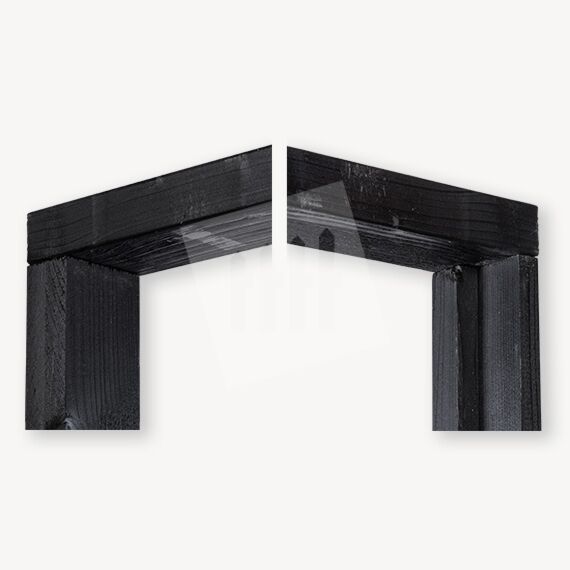 Materiaal: zwart gespoten vurenhout | Kozijn en aanslagligger | Voor montage deur aan betonpaal