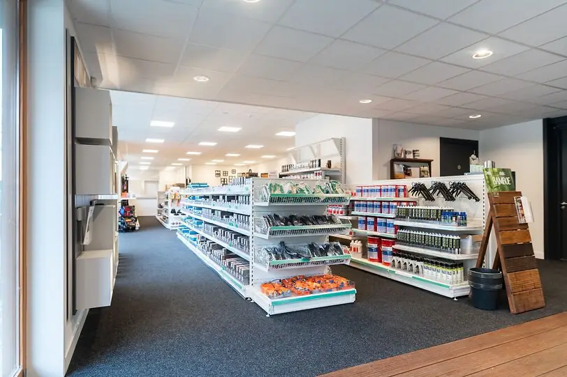 In onze vestiging in Barneveld vind je ook een kleine showroom met onder andere ramen en voorbeelden van thermowood gevelbekleding. Daarnaast is er een winkel met ijzerwaren, onderhoudsmiddelen en andere tuinaccessoires.