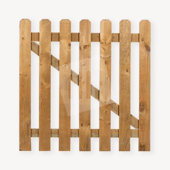 Maak uw nieuwe tuinhek compleet met dit basic tuinpoortje. De poort is gemaakt van 7 gladgeschaafde, groen geïmpregneerde grenen planken. De bovenkant van de planken is op een mooie manier afgeschuind. Het hek is standaard 100 cm breed en beschikbaar in drie hoogtes.