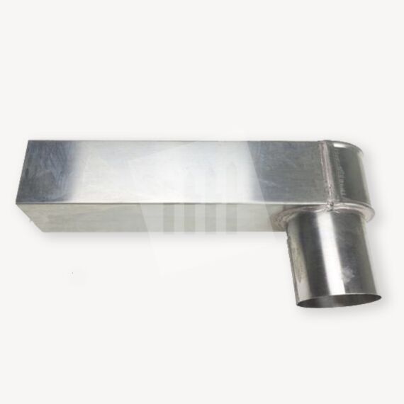 Deze zinken stadsuitloop heeft een afmeting van 6x8 cm en schuift daardoor mooi in het EPDM. De buis heeft een diameter van 8 cm.